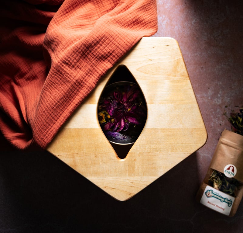 Wanneer je op een krukje met een opening plaatsneemt, stijgt de zachte damp omhoog en komt die tegen je vulva aan. De huid daar is slijmvlieshuid: dun, gevoelig en direct verbonden met je bloedbaan. Door de warmte openen de poriën zich en kan je lichaam de werkzame stoffen van de kruiden makkelijker opnemen. Tegelijkertijd wil je lichaam de warmte verspreiden en gaat je bloed sneller stromen. Dat verbetert de doorbloeding in je hele bekkengebied en zorgt dat de kruiden dieper kunnen inwerken.